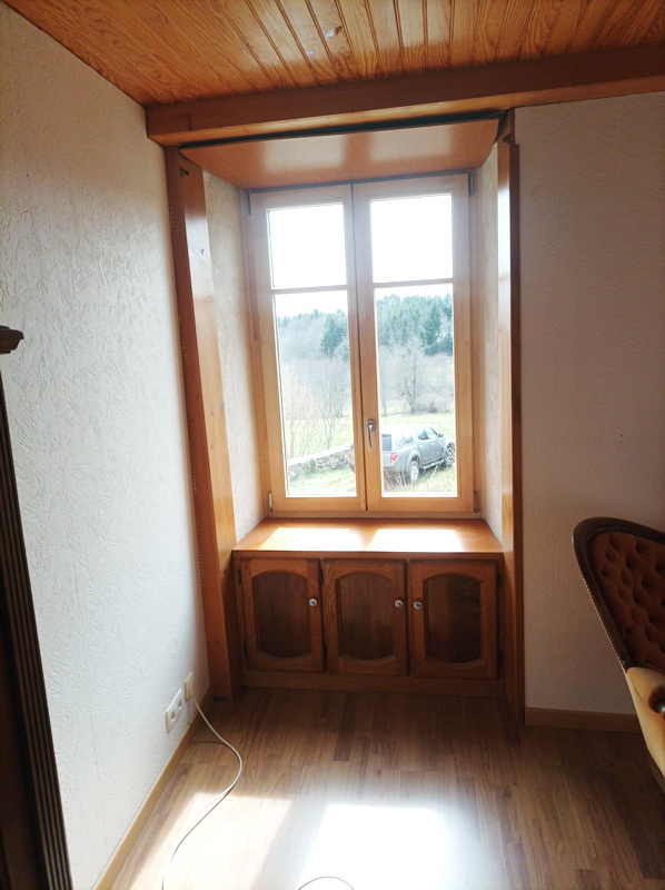 A l’atelier, Lapendry menuiserie a réalisé 4 fenêtres sur mesure avec un châssis bois sur lequel ils ont mis en place un double vitrage. Le châssis avait au préalable reçu l ‘application d’un produit de protection.