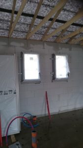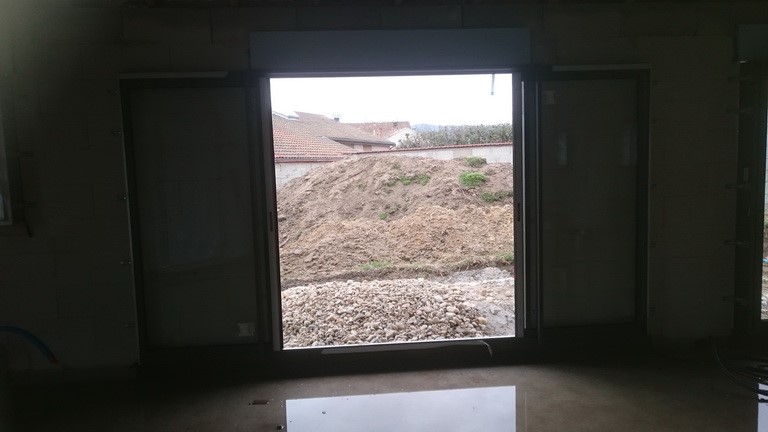 « La mise hors d’air correspond à la pose des menuiseries extérieures. La construction est étanche, tant à l’eau, qu’à l’air explique Denis Lapendry. Nous avons posé 1 baie coulissante 2 vantaux qui glissent dans le galandage ce qui permet une utilisation maximum de l’ouverture et un vrai gain de place intérieure, 2 autres baies 2 vantaux et une baie avec un vantail, des fenêtres avec oscillo battant pour les chambres, le tout équipé de volets roulants intégrés. Nous avons terminé par la fenêtre de la cuisine , 3 petites ouvertures et la porte d’entrée! La maison était enfin étanche! »