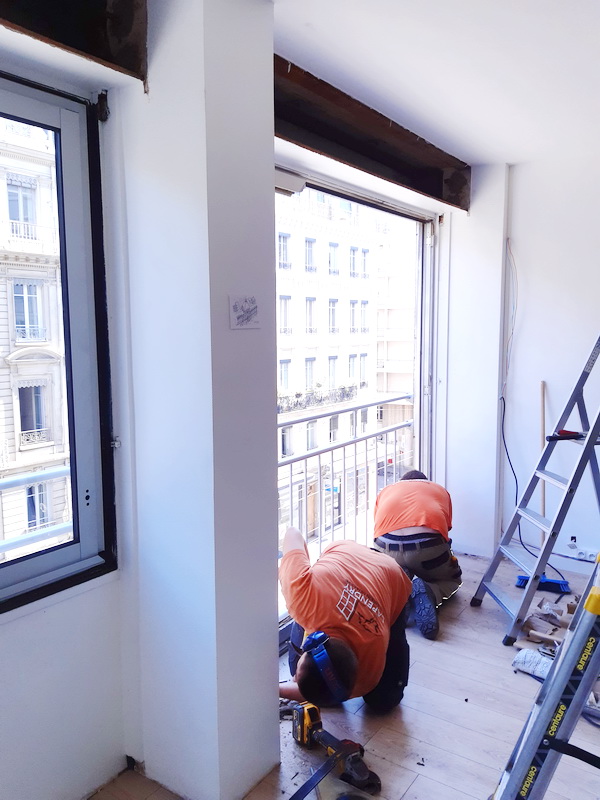 Dans le cadre de la rénovation de leurs ouvrants, les propriétaires d’un appartement ancien à Lyon, ont fait au savoir faire de Lapendry menuiserie pour poser 2 fenêtres, 1 porte-fenêtre avec 2 vantaux fixes en aluminium bicolore( gris en extérieur, blanc intérieur), installer et isoler sur la totalité de nouveaux roulants.