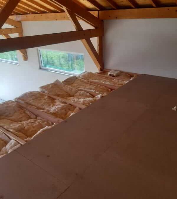 Pose d’un plancher isolant dans l’espace spa d’un gite dans les monts du forez par Lapendry menuiserie
